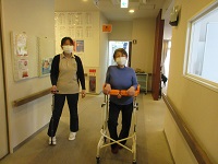 O様、シーハーツ川口に入居され、約1年半になります。その間、お孫様の結婚式に出席したいとの事から、リハビリを頑張られ、入居時は、車いすでの生活から、歩行器使用になり、リハビリ時は、杖歩行もできるくらい頑張られ、今があります。昨年秋には、念願のお孫様の結婚式にも出席されました。これからも、リハビリを楽しみながら頑張ってくださいね💛
