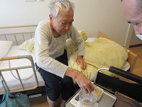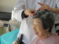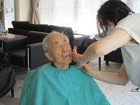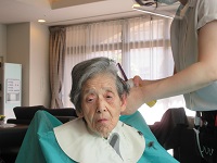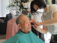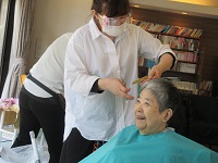今日は理美容の方が来て、希望された入居者の方のカットをしていただきました。