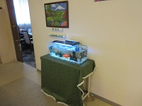 M様が、金魚すくいで買い始めた金魚ですが、順調に成長し、今では、1階ロビーを守る大事な仲間になってます。金魚の大きさを考えるとやや水槽が小さくなったように感じますが、水槽大きくすると金魚でなく鯉になりそうなのでこのままで頑張ってもらいます。