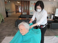 本日、1階ラウンジで理美容行ってます。1月中旬以降のコロナ感染対策で、理美容が中止となっておりましたので、しばらくぶりの理美容で、皆様、すっきりされた髪型に変身されてます。