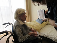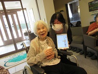 R様のLINE面会がありました。施設側では、iPadで対応させていただいております。画面を持ってお話をする事がご入居者様によっては、難しい事がありますので、iPadを持つ補助させて頂きながら対応させていただいております。