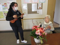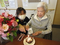 本日、3月4日は、M様のお誕生日です。ご家族からも、お誕生日のプレゼントがありましたが、施設からも、プレゼントをお送りさせて頂きました。綺麗な白髪で、いつも、スタッフが編み込みしていますが、髪留めをプレゼントとしてお渡ししたら、素敵な笑顔で写真撮らせてくれました。M様お誕生日おめでとうございます💛