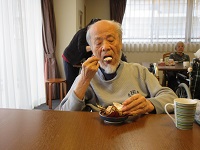 お食事では副菜を先に召し上がりごはんが残ってしまいますが、奥様から預かっているふりかけをかけると全部召し上がっていただけます。