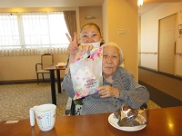 モンブランケーキとプレゼントを笑顔でもらっていただきました。