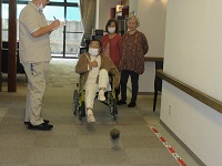 平等にということで、皆さん座りながらのスリッパ飛ばしです。