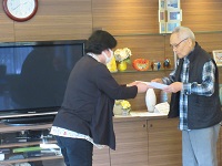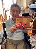 手先の器用な入居者様に、紙の工作で赤べこを作っていただきました。