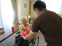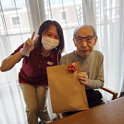 102歳の最高齢のK様と卒寿のT様、K様、K様、I様と米寿のK様のお祝いを行いました。皆様、プレゼントを喜んでいただけたようでした。皆様おめでとうございます!