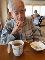 普段から食べることが大好きな方で、特別な笑顔をいただき、職員も笑顔になりました。