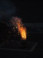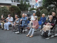 行いましたが、今回は、全て起き型の花火で実施、あまり、火が上がらない物で、2メートルの物でしたが、最初の花火は、3個づつの花火を3か所に設置した為、ご入居者様のびっくり顔が印象的でした。