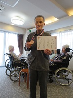 8月29日の夏祭りの時に開催しましたボーリング選手権の表彰式を、本日行いました。フロア対抗は、3階フロアで、賞状と額を代表者に進呈と個人の表彰も行いました。個人戦では、ストライクを出されたK様、H様が金メダルでした。おめでとうございます!