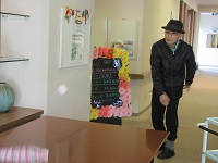 8月29日の夏祭りの時にスタッフで担ぐお神輿を1階玄関に飾らせていただいてます。このお神輿は、前の介護リーダーで、今は柏の葉の介護リーダーの池田さんの手作りです。お神輿の鳳凰は、紙粘土で型を作り金紙で飾り付けをした力作です。