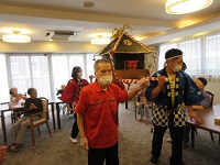 本日、シーハーツ川口の夏祭りを開催しました。10時から、スタッフがお神輿を担ぎ、各フロアと居室を巡回しました。入居者様も一緒に担いでくださいました。ワッショイワッショイの掛け声で、コロナに負けないように元気で過ごしましょう!! 4階は、お神輿の時に、東京音頭の合唱で盛り上げてくれました。ありがとうございます。