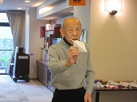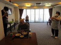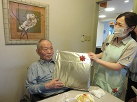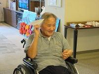 7月8日は、N様のお誕生日でした。奥様が少し離れたところで、一緒にお祝いをさせていただきました。奥様の声に普段とは違ったうれしそうなお顔を見せて下さいました。
