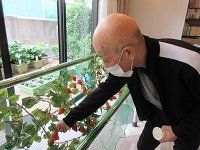 4月24日は、2階、3階のご入居者様を対象にしたイチゴ狩りを開催しました。イチゴをその場で収穫し、直接召し上がられた方もおられ、静かに、楽しんで頂きました。