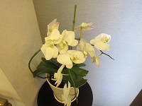 玄関のところにユリと胡蝶蘭を飾らせて頂いております。