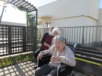 屋上のラティスのバラがきれいに咲きました。特にピンクのバラが濃淡ともに蕾を多くきれいに咲いてます。天気も良く、風が気持ちが良かったので、ご入居者様とともにパラ見学をしました。
