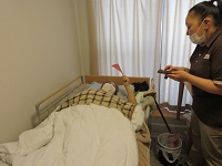 本日は、K様のお誕生日です。ご本人の希望で、ショートケーキを自分だけで食べたいとの事でした。蝋燭の日もしっかりと消され、満足そうな笑顔を