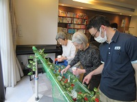 4月17日は、第2回目のイチゴ狩りを開催しました。3月に開催し、好評でしたので、第2回をさせて頂きました。今回は、イチゴの収穫量が少なく、全館での開催ができず、4階・5階のご入居者様を対象とさせて頂きました。