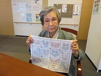 今回の作品は、刺し子です。お好きな色の刺繡糸で、真剣に作品に取り組まれておりました。