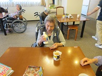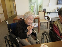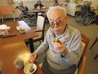 水曜日恒例のパン焼きイベントです。本日は、4階のご入居者様にバターを作って頂き、焼き立てのミルクレーズンパンを召し上がって頂きました。