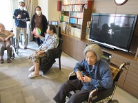 桜イベントとして、感染対策を行いながら、同じフロアの入居者様のグループで、車の中から、グリーンセンター近くの見沼用水路の桜並木を見学に行きました。