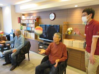 前日使用した紙風船よりも大きな紙風船で行いましたが、こんなにも、記録が良くなるとは思っておりませんでした。皆様、頑張ってます。