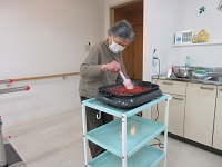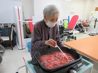 先日、家庭サークルでジャム作りを行いましたが、簡単にできましたので、本日は、前回と違うご入居者様とともにジャムとバターを作りました。明日は、パンを焼きます。焼き立てのパンとともに、本日のジャムとバターを入居者様と楽しみたいと思います。