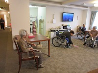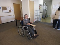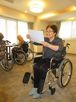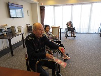 フロアでの参加者の声に惹かれて、居室で休まれていたご入居者様の参加したいとのお話があり、急遽ベッドをギャッジアップして参加もして下さりました。
