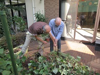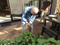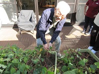 園芸サークルで川口ガーデンにて栽培しているさつまいもを、収穫しました。各自でプランターで栽培していた結果ですが、苗植から、声掛けを常に行っていたO様の成長が一番大きいさつまいもが3本も収穫できました。