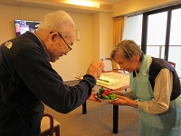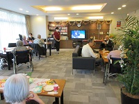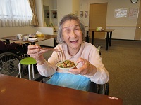 準備の時は、ドーナツにジュースを希望される方が多いと思ってました。珈琲をドリップしておりましたので、珈琲とドーナツの香りに部屋が包まれていたので、皆様、コーヒーを希望されるご入居者様が多かったです。