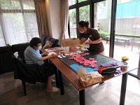9/18に引き続き、9/19も家庭・文化部で作品作りを行いました。参加者も2名増え、作品が出来上がりました。ご入居者様と内山介護リーダーの頑張りの成果です!!