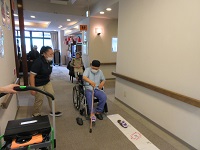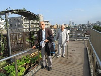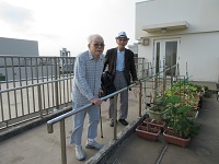 K様とD様が仲良く、4階フロアで談笑をされていたので、声掛けを行い、屋上にリハビリを兼ねて散歩に行かれました。