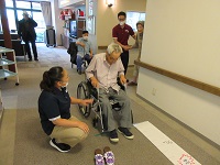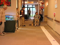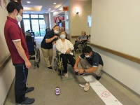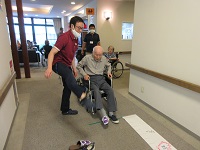 スリッパ飛ばし選手権の2日目です。入居者様の参加は、16名です。本日の最長記録はI様で、4m30cmでした。今日初めて参加された方、2回目の参加の方もおりますが、笑顔のイベントとなってます!!