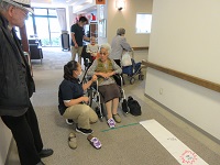条件を一致させるため、皆様、車いす乗車で挑戦してます。