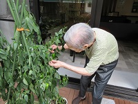 天気予報では、大雨予報でしたが、午後には、青空になりましたので、ピーマンの収穫をY様と共に行いました。まだ、小さい実は残してますので、次回は別の園芸部の皆様と収穫を行います。収穫したピーマンは、料理をしたいと考えております。次回料理の様子をご報告させて頂きます。