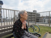 本日は、今までよりも、気温が高くなかったので、屋上でリハビリをしたいとの希望により、屋上での訓練となりました。