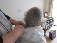 理美容が、コロナ対策で中止させて頂いておりますので、N様から髪の毛が長くなって気持ちが悪いので、カットしてほしいとのご要望があり、対応させて頂きました。N様から、やっとすっきりした、ありがとうとのお話を頂きました。