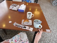 皆様、シーハーツ川口でバースデイソングとともに、誕生会を行っておりますが、T様のご希望にて、ささやか誕生会となりました。写真もプレゼントの時とご希望されたシャルドンのアップルパイと紅茶を召し上がって頂きました。