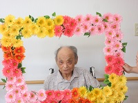 6月15日は、O様のお誕生日です。O様にご希望を伺いましたら、ご家族との面会との事でしたが、コロナの関係で面会ができないので、ご家族に事前に施設に来て頂き、ビデオレターを撮影し、パソコンからテレビに投影し楽しんで頂きました。その時の映像は、ビデオに残してますが、ご紹介は、写真とさせて頂きました。