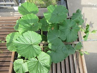 さつまいもの苗が隣のプランターに届く程、どの苗もぐんぐん成長してます。枝も緑から紫色になってきてます。入居者様から、「戦争中、さつまいもの茎も食べたのよ。紫色に成長したら、食べれるわよ」と教えてくれました。
