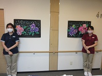 併せて、インドネシアから技能実習生として、昨年の3月から、川口で介護を学んでいる2人の写真も紫陽花の飾りと共にご紹介させて頂きます。日本語もしっかりと学んでおり、最近は、漢字も含めた文章も書く事もでき、ご入居者様にとって孫のような存在です。川口に来てから、もう、1年以上経過し、すっかり私から親離れし、まごまごしていた時が遠い昔に感じます。彼女達の元気で明るい声掛けで施設の中も明るくなります。このまま、元気で頑張っていけるように、職員皆で見守りたいと思っております。他の職員にとっても、アイドル的癒しの存在の2人です。