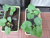 野菜栽培用の深型のプランターに苗を植え直してから、ご入居者様のやさしい声掛けも手伝ってぐんぐん大きな葉っぱに成長しております。畑を作り、その畑に植えた苗よりも成長が早いように感じます。やっぱり声掛けが一番の肥料かしら・・・園芸担当の畠中氏の力も大きいと思います。皆様ありがとうございます。