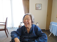 4階のラウンジに伺ったら、ちょうどテレビでテレビ体操を行っていました。入居者様から、「今日はラジオ体操をしないの?」と聞かれ、今、テレビで体操をしてますよとお伝えしたら、あれは、難しいから簡単な体操がいいとの事でした。手を伸ばす運動をしている時に写真を撮らせて頂きました。お一人は、体操の写真で、もうお一人は、カメラを向けた瞬間に素敵なポーズとなりそのまま写真となってます。