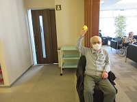 13時30分からカラオケがある為、13時頃に1階ラウンジに集まれておりましたので、ラジオ体操をやりませんかの声掛けに賛同してくださいました。