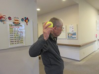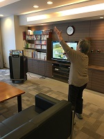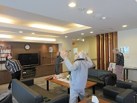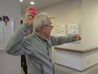 千葉グリーンピックのカラーボール投げの後、まだ動き足りない表情でしたので、ラジオ体操を一緒にとの事で、行いました。いつもは、11時から、施設独自の体操を行っておりますが、ラジオ体操はしばらくぶりでした。皆様、体が覚えていて、間違えずに最後まで、やり抜きました。その後は、ラウンジのソファーで談笑されています。