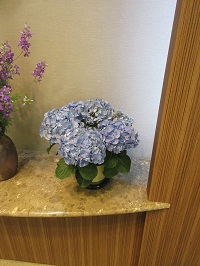 写真を見て下さるとわかりますが、本物の紫陽花とスタッフが作った紫陽花の