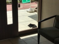 朝、玄関の掃除をしようとしたところに小さな黒猫が