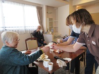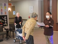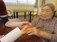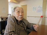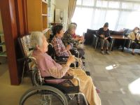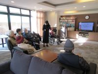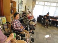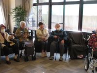 本日は、音楽療法の日です。ペチカや冬の歌に合わせて鈴を鳴らして一緒に歌唱されておりました。皆様鈴のリズム感はばっちり決まっておりました。