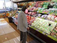 買い物会は人気があるイベントで、今回参加した入居者様も早く行きましょうと何度もスタッフに声を掛けたり、店内では購入するものを決めていたが、他の商品を見ると迷う姿もありました。