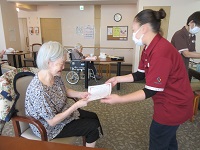 普段はお身体のこともあり甘い物は禁止ですが、今日はお許しいただき大好きなチーズケーキを召し上がっていただきました。とても喜ばれていました(^^♪